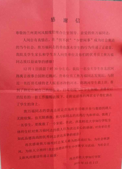 蘭州女大學(xué)生跳河輕生 城關(guān)物業(yè)保潔員冒險(xiǎn)及時(shí)救人