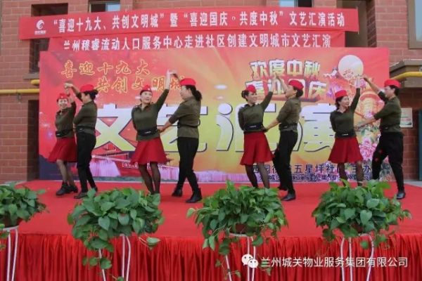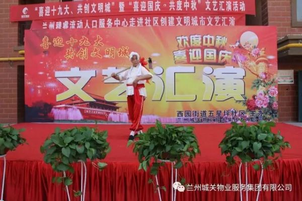 為了迎接黨的十九大勝利召開(kāi),積極配合創(chuàng)建全國(guó)文明城市工作的開(kāi)展,豐富業(yè)主的文化生活,在“雙節(jié)”來(lái)臨之際,城關(guān)物業(yè)服務(wù)集團(tuán)中石油項(xiàng)目部聯(lián)合五星坪社區(qū)共同舉辦了“喜迎十九大”文藝匯演。