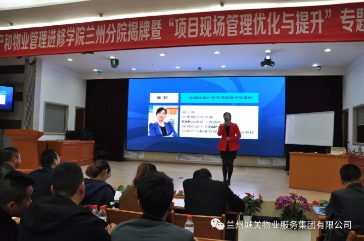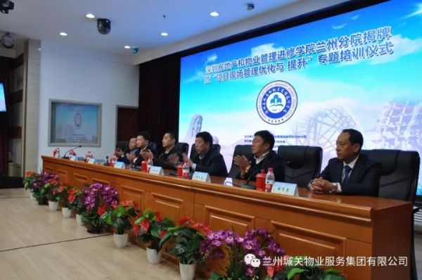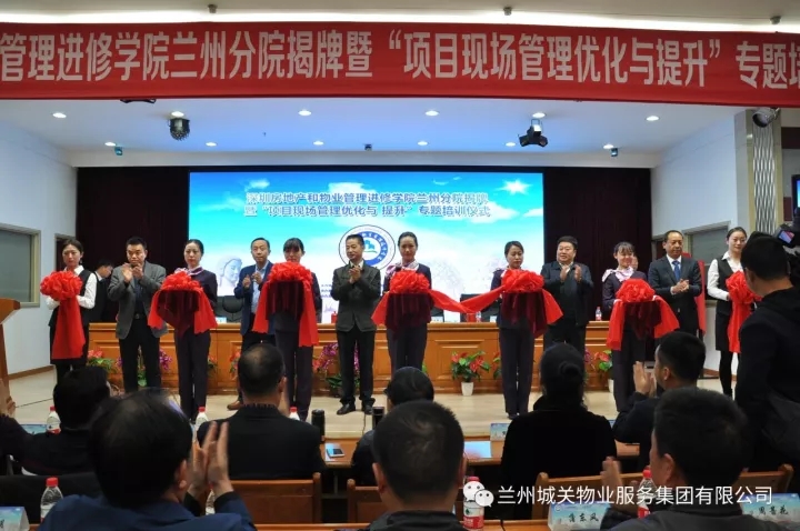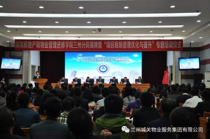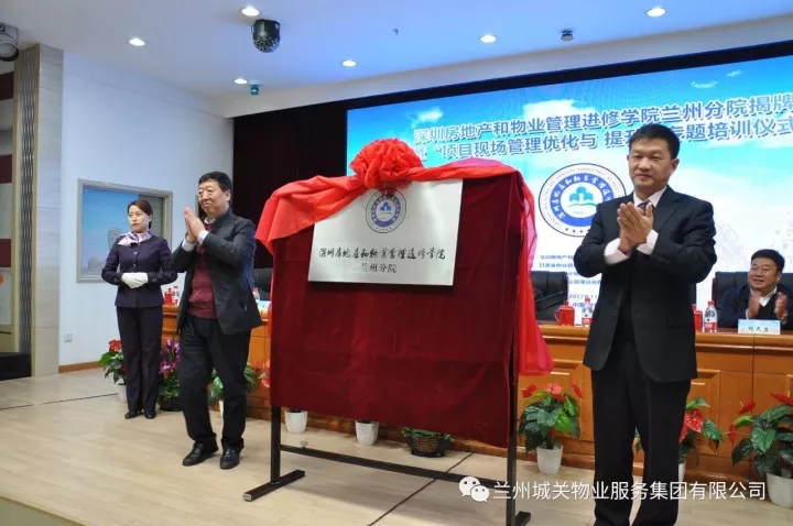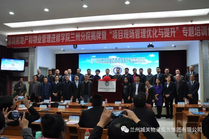 11月9日,深圳房地產(chǎn)和物業(yè)管理進修學院蘭州分院揭牌暨“項目現(xiàn)場管理優(yōu)化與提升”專題培訓儀式在蘭州新聞出版大廈七樓多功能廳舉辦。蘭州市人力資源和社會保障局、蘭州市住房保障和房產(chǎn)管理局、蘭州市商務局等單位的領導及深圳房地產(chǎn)和物業(yè)管理進修學院院長劉業(yè)全、蘭州城關物業(yè)服務集團有限公司董事長楊民召、甘肅新華飛天物業(yè)管理有限公司總經(jīng)理張建國等相關企業(yè)代表300余人出席了揭牌儀式。