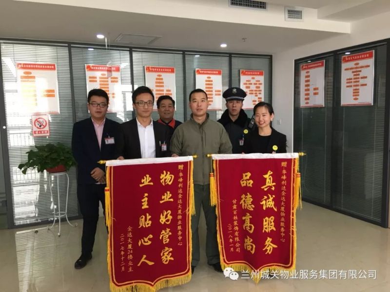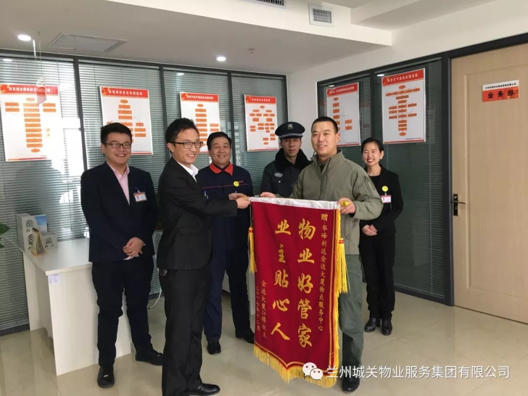 近日,金達(dá)商務(wù)大廈24樓業(yè)主將題有“真誠服務(wù),品德高尚”、“物業(yè)好管家,業(yè)主貼心人”的兩面錦旗送至華峰利達(dá)物業(yè)公司,并對工作人員心系業(yè)主、認(rèn)真負(fù)責(zé)的工作態(tài)度表示了肯定和感謝。