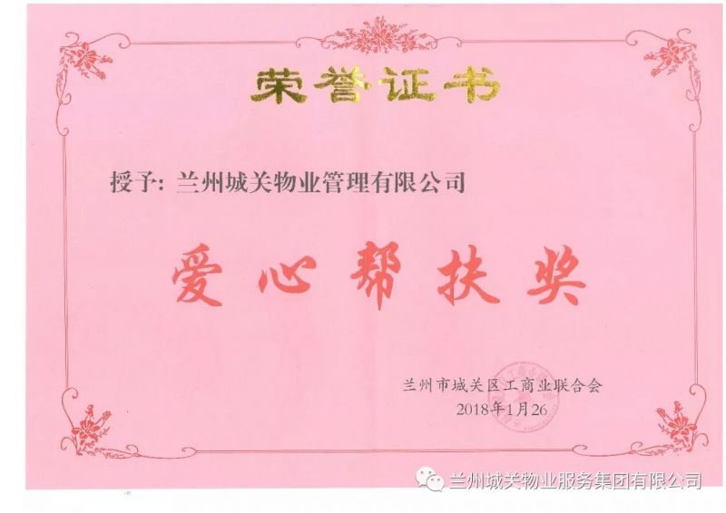 1月26日,城關(guān)區(qū)工商業(yè)聯(lián)合會第十三屆二次執(zhí)委會議在蘭召開。會議書面?zhèn)鬟_(dá)了十九大及全聯(lián)十二大會議精神,審議通過了城關(guān)區(qū)工商聯(lián)十三屆一次執(zhí)委會工作報(bào)告及有關(guān)人事調(diào)整事項(xiàng),并表彰了2017年度優(yōu)秀會員及愛心企業(yè)。蘭州城關(guān)物業(yè)服務(wù)集團(tuán)榮獲“愛心幫扶獎(jiǎng)”,蘭州城關(guān)物業(yè)服務(wù)集團(tuán)CEO楊佳林榮獲“突出貢獻(xiàn)獎(jiǎng)”。
