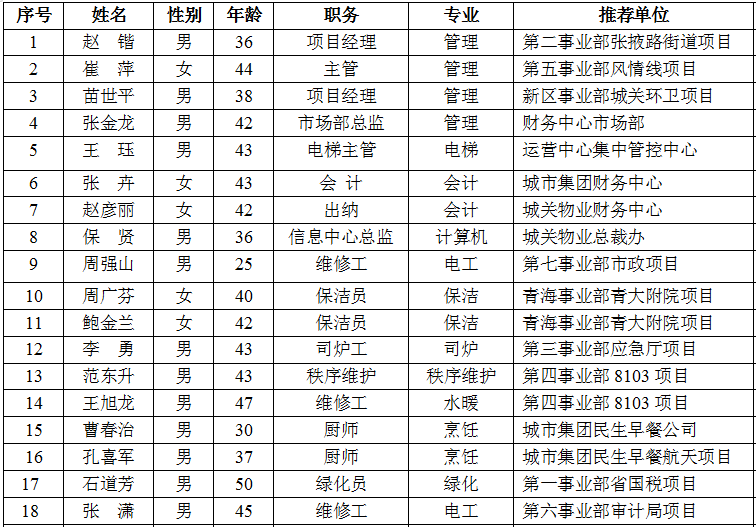 集團(tuán)2019年勞動(dòng)模范推薦人選