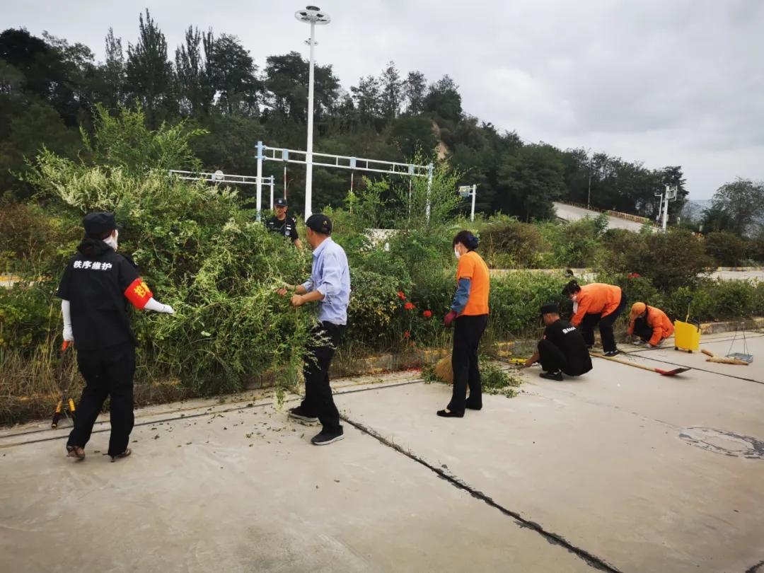 保潔人員清理雜草