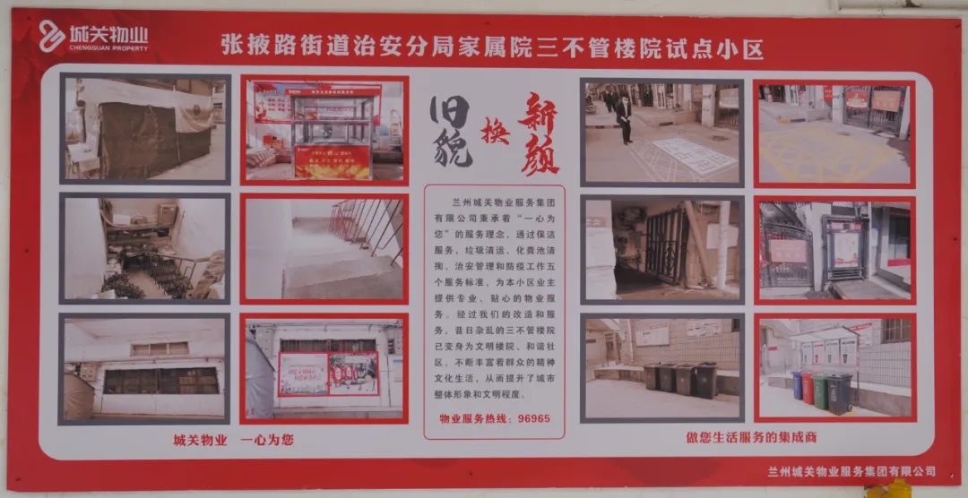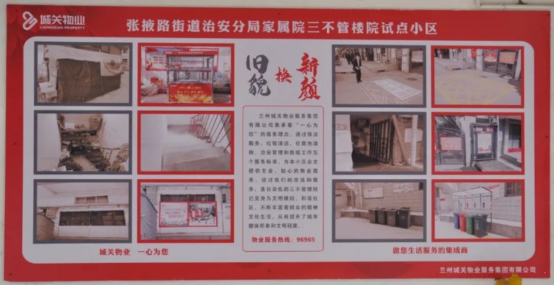 蘭州城關(guān)物業(yè)全面接管城關(guān)區(qū)老舊樓院后,采取先期介入、分層改造等新模式,啟動(dòng)實(shí)施“三不管”樓院物業(yè)全覆蓋整治工作,通過(guò)環(huán)境衛(wèi)生改造,基礎(chǔ)設(shè)施維修,安全秩序維護(hù)等方面工作,把‘三不管’樓院變成‘三要管’。我們將繼續(xù)努力,持續(xù)推進(jìn)城關(guān)區(qū)老舊樓院改造,不斷引入多元化服務(wù),全面提升服務(wù)質(zhì)量,提升業(yè)主的幸福感和滿意度!