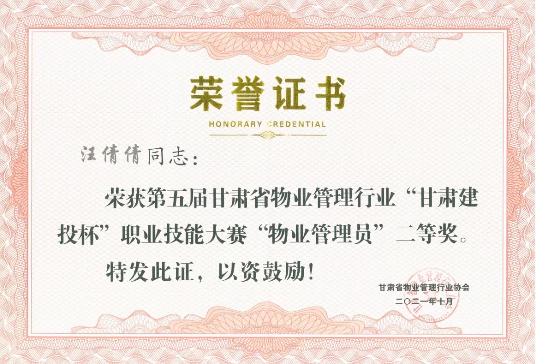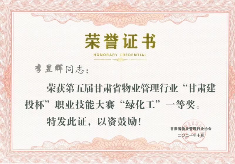 本屆比賽,蘭州城關(guān)物業(yè)服務(wù)集團(tuán)有限公司派出八十余名選手參賽,經(jīng)過一整天緊張激烈的角逐,李昱輝榮獲綠化組一等獎,汪倩倩榮獲物業(yè)管理員組二等獎,劉華榮獲電工組二等獎,劉克卿、張明祖榮獲電工組三等獎、李紅珍榮獲保潔組三等獎,城關(guān)物業(yè)榮獲優(yōu)秀組織獎,充分展現(xiàn)了我們專業(yè)、標(biāo)準(zhǔn)、高效的物業(yè)服務(wù)和管理能力。