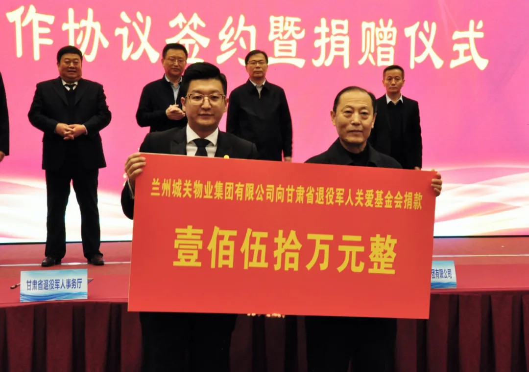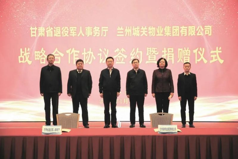 社會(huì)尊崇,愛滿人間。為深化雙擁共建,關(guān)愛退役軍人,甘肅省退役軍人事務(wù)廳與蘭州城關(guān)物業(yè)集團(tuán)戰(zhàn)略合作協(xié)議簽約暨捐贈(zèng)儀式在省城寧臥莊賓館舉行。