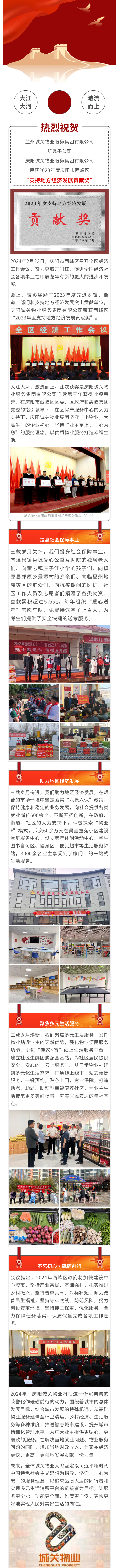 大江大河 激流而上|慶陽誠關(guān)物業(yè)服務(wù)集團榮獲2023年“支持地方經(jīng)濟發(fā)展貢獻獎”